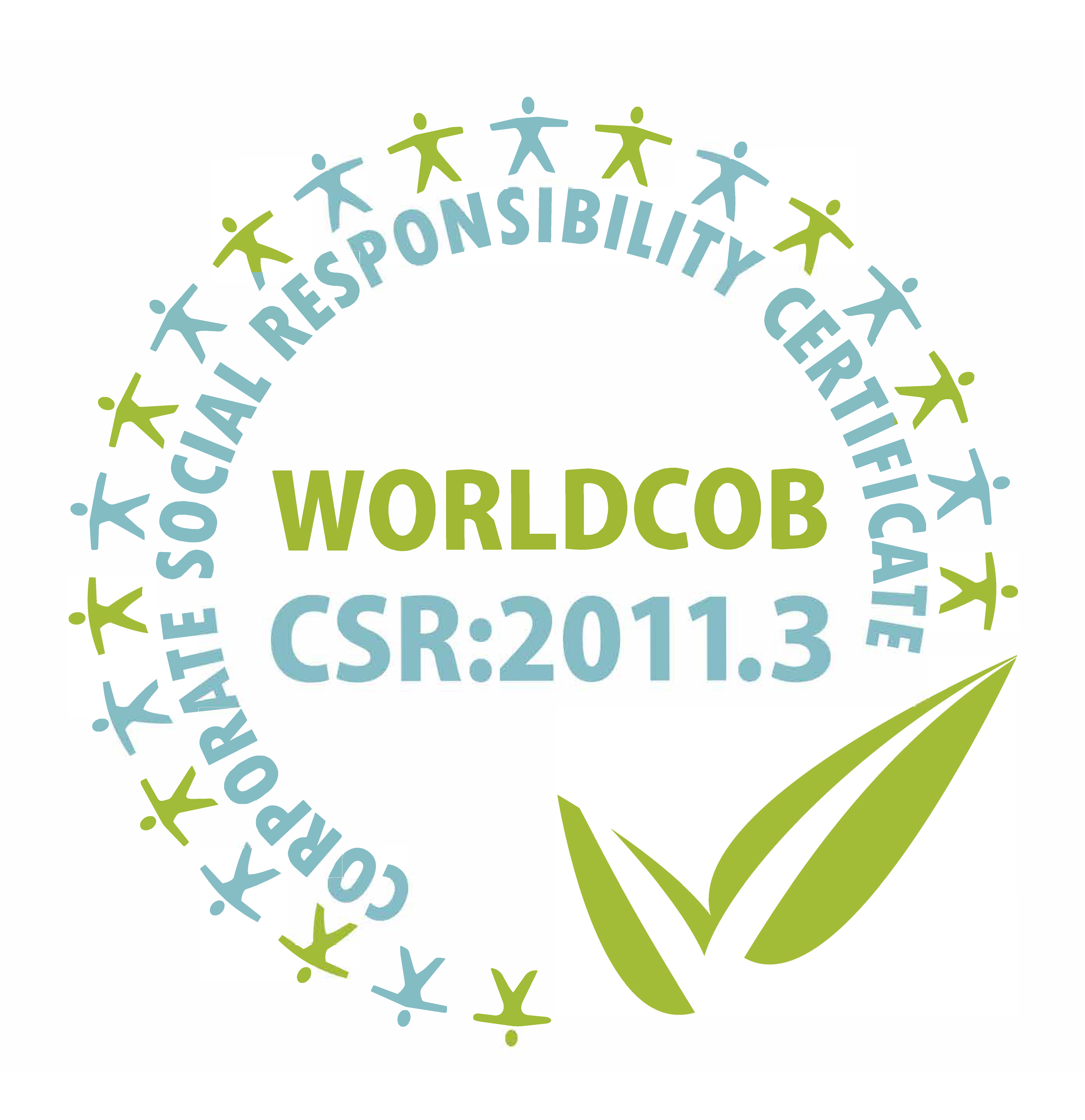 Distinción otorgada a empresas certificadas con el estándar WORLDCOB-CSR:2011.3 de Responsabilidad Social Empresarial y reconocidas por su compromiso con la excelencia empresarial y las buenas prácticas sostenibles.
